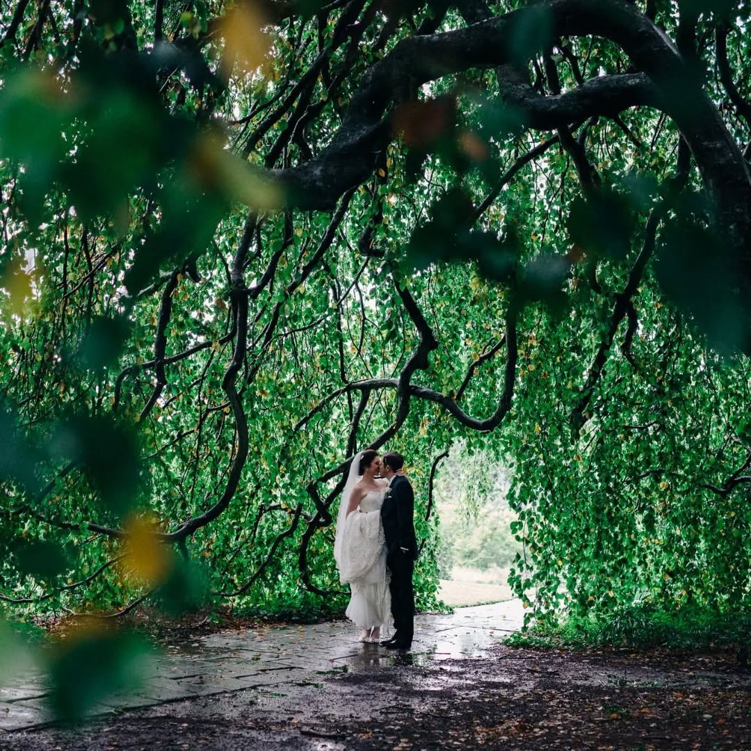 This feels like stepping into a secret garden where the air is thick with love and leaves. Tucked beneath a weeping canopy, the couple shares a quiet moment that looks plucked from the pages of a fairytale—no need for props or petals, just the hush of nature cradling them in green.