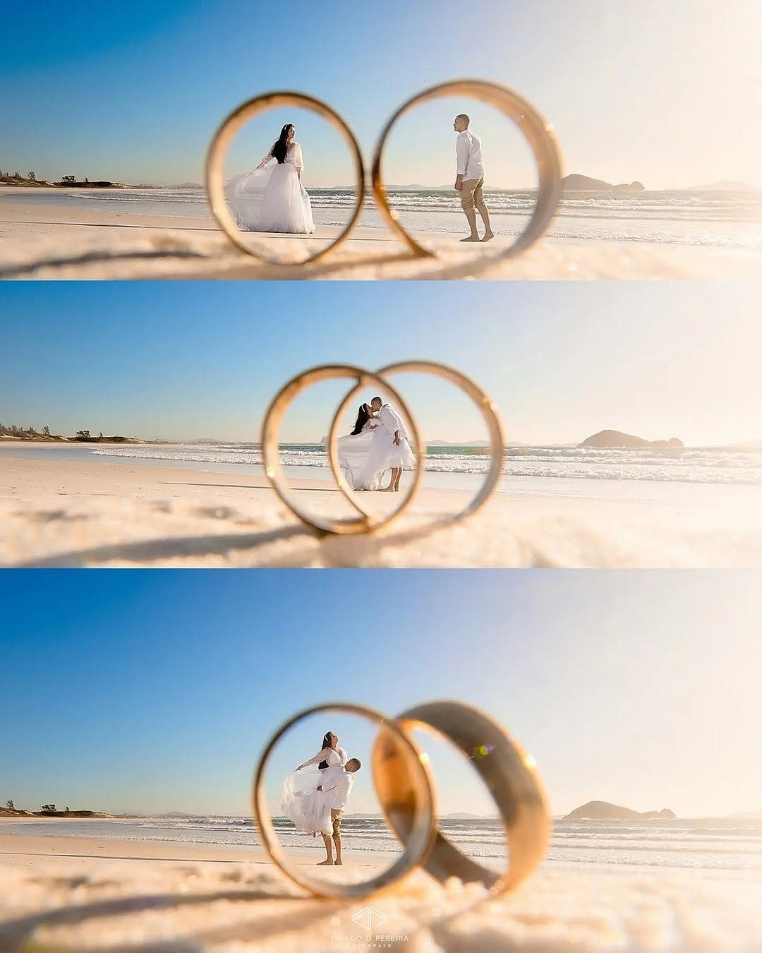 This series is just genius. A love story told through wedding bands, framing the couple on a bright, windswept beach. It’s playful, personal, and impossibly sweet. You can feel the sun warming the sand and the ocean breeze catching her veil.