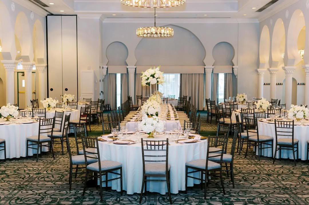 I’m loving how @vinoywed played with the layout—round tables for mingling, a long one for the head table moment, and those floral towers keeping things effortlessly elevated (literally and otherwise). It’s timeless, it’s chic, it’s giving “we booked the whole ballroom, darling.”