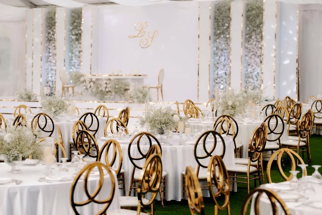 I mean… have you ever seen a chair slay this hard? These gold-loop beauties by @dreamhouseevents make every guest feel like wedding-day nobility.
