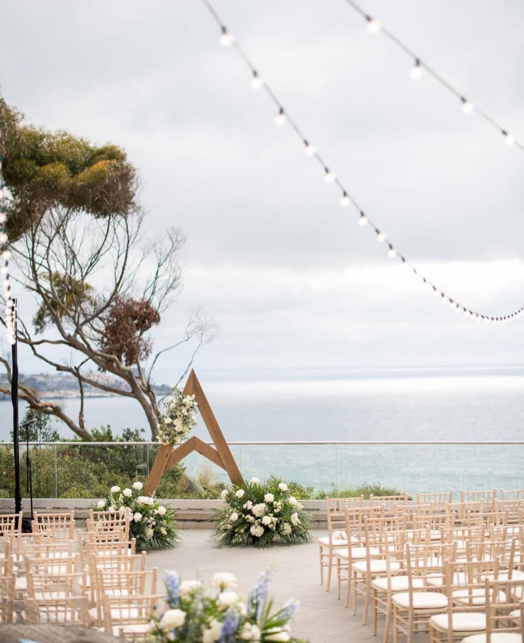Sometimes less truly is more. The restrained styling allows the bay and skyline to shine, creating a ceremony that feels calm and refined.