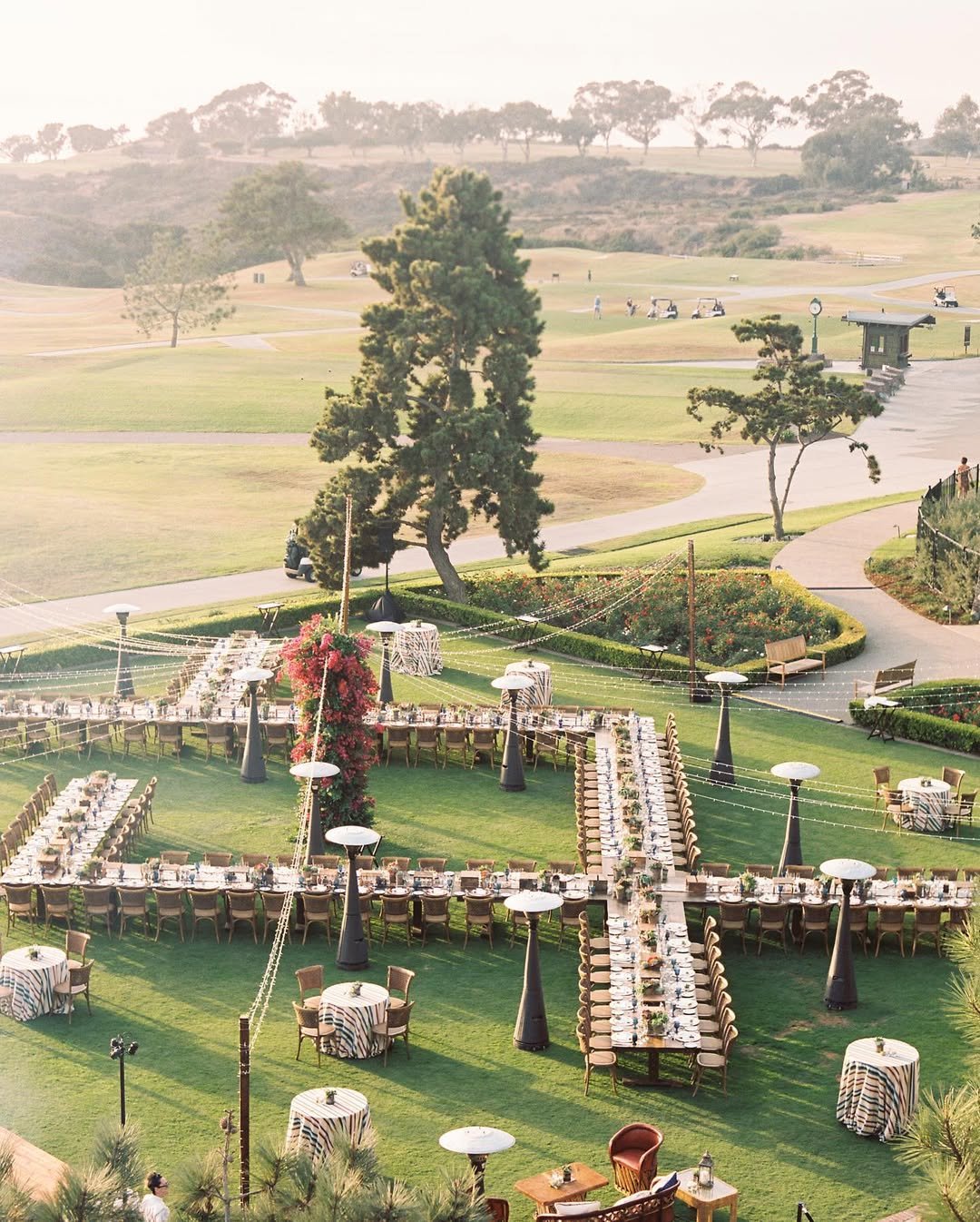 This setup is made for a grand celebration. The layout encourages movement and mingling, while the landscape keeps it relaxed and quintessentially Southern California.