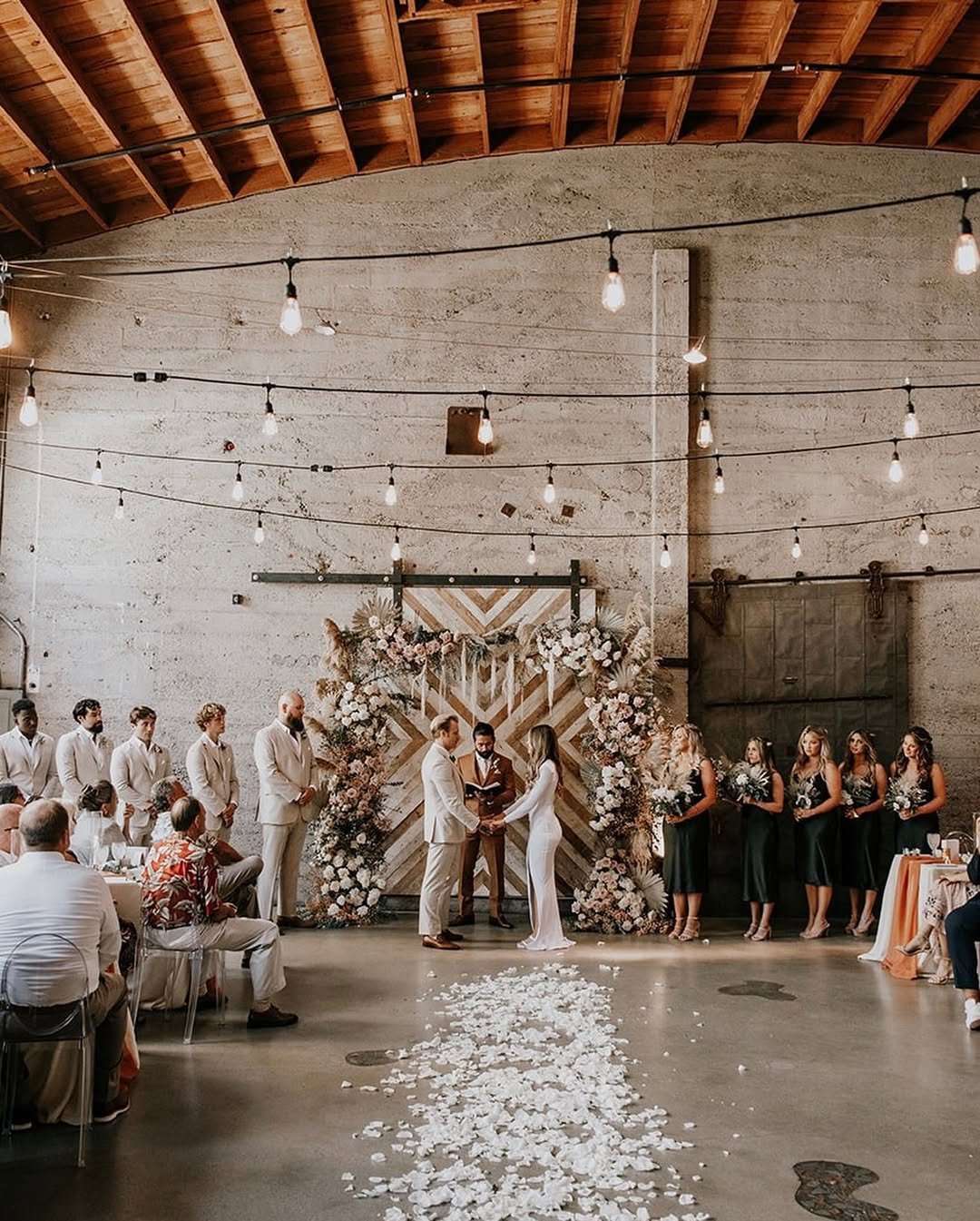 There is something so serene about this setting. It does not need much styling because the architecture speaks for itself. Add neutral florals and olive branches, and you have a ceremony that feels timeless and intimate.